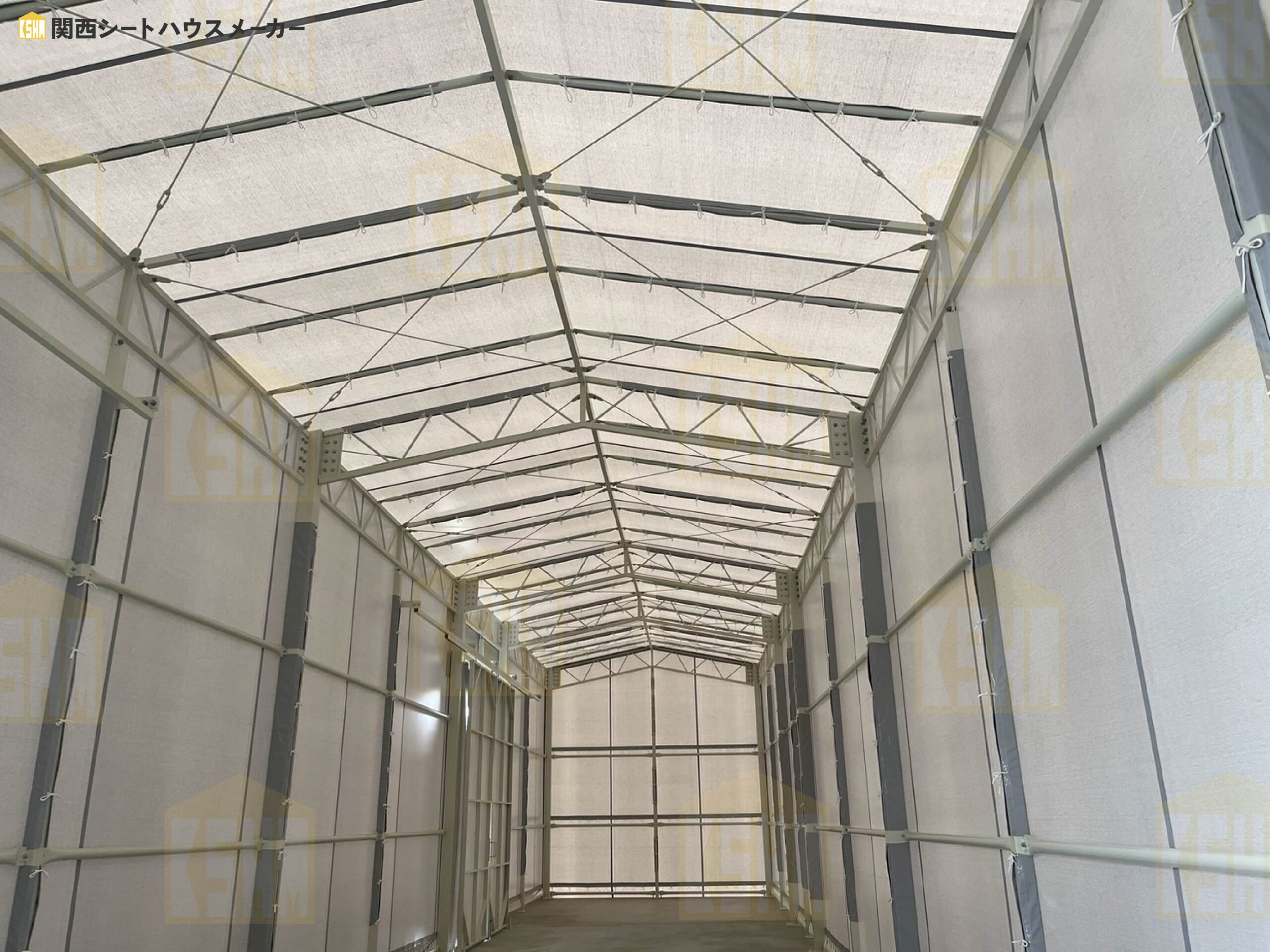 2025.12.26 京都府 備品置き場にピッタリ!シートハウスを建築しました! 建設の場所 京都府 種別 シートハウス サイズ W5×L30×H5 使用したテント生地 ウルトラマックスタイプC グレー オプション ハンガー扉・庇 京都府でシートハウスを建築しました。取材に角材を使用しておりますので有効巾が少し広めとなっております。庇も取り付けておりますので開口頭上からの雨水等は防げますので安心となっております。このようなシートハウスを弊社は主に製造から施工まで一貫して対応させて頂きます。検討されている方は弊社へお問合せください!
