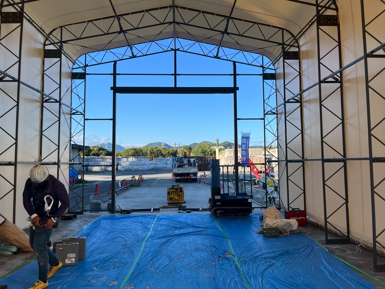 2025.10.29 和歌山県 お客様のニーズに合わせます!シートハウスを建築中です! 建設の場所 和歌山県 種別 シートハウス サイズ W7×L11×H5 使用したテント生地 ウルトラマックスCタイプ オプション ドアサッシ 今回は、和歌山県でシートハウスを建築中です!弊社ではお客様に合わせた完全自由設計が可能です。理想のシートハウスを建築できます!お客様に寄り添い高い高品質なシートハウスを!是非お気軽にお問い合わせください!