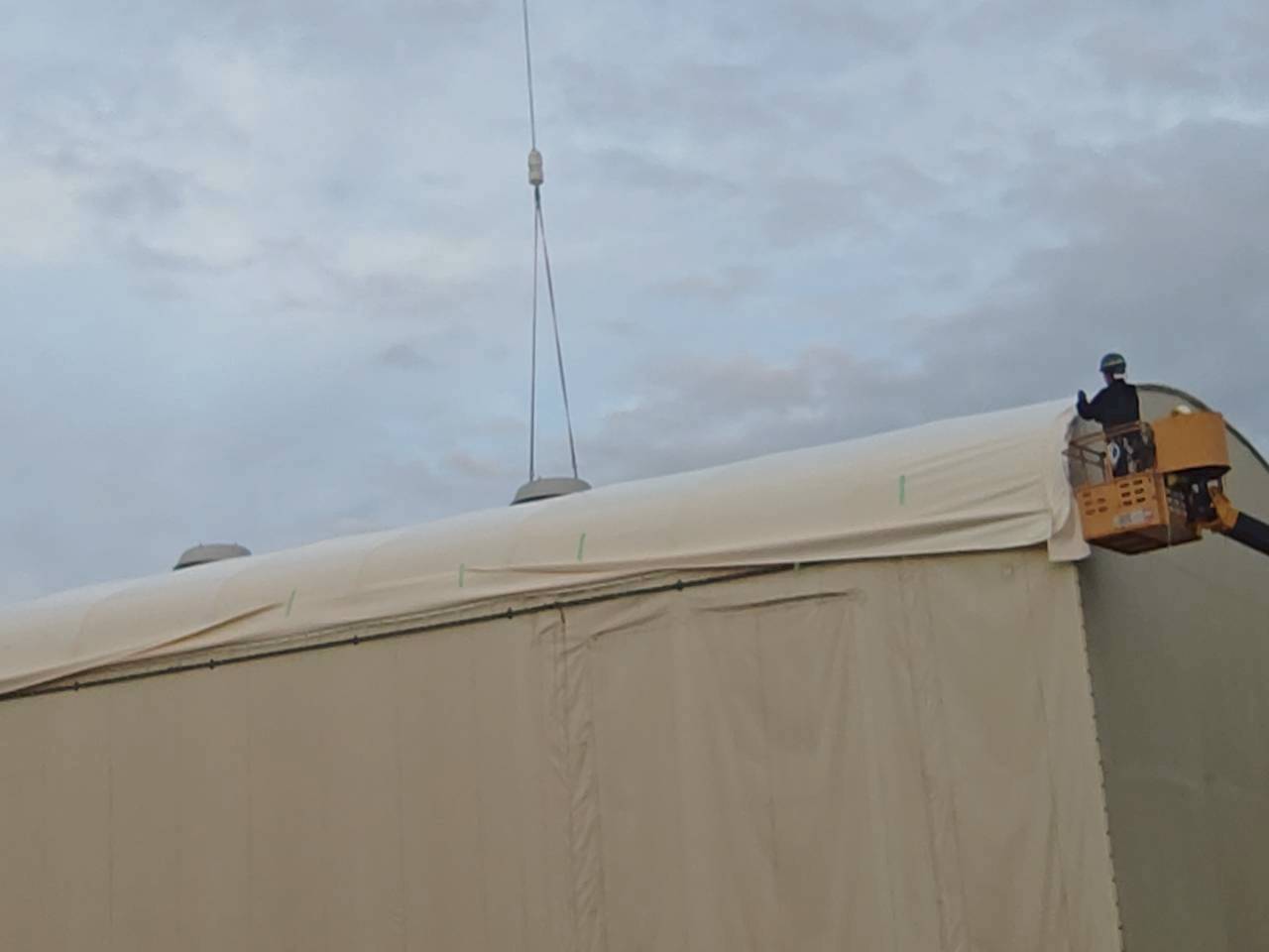 2025.11.28 奈良県 既存のテント倉庫の修復も可能です!テント倉庫のシートキャップ等の施工をしました! 建設の場所 奈良県 種別 シートキャップ・補修 サイズ W12×L20×H5 使用したテント生地 ウルトラマックス 今回は既存のテント倉庫にシートキャップの施工と生地の補修を行いました!生地は劣化しているがコストを抑えて雨漏りなどを防ぎたい場合、シートキャップ工法という手段があります。こちらは屋根に上から新しい生地を被せるというもので、コストを大幅に抑えることが可能です。他の生地が破れている部分はテント生地用の補修テープを使用し穴を防ぎます。テント倉庫や生地替えについて費用面で困っている方は一度弊社へお問い合わせください!解決策を一緒に考えさせていただきます!
